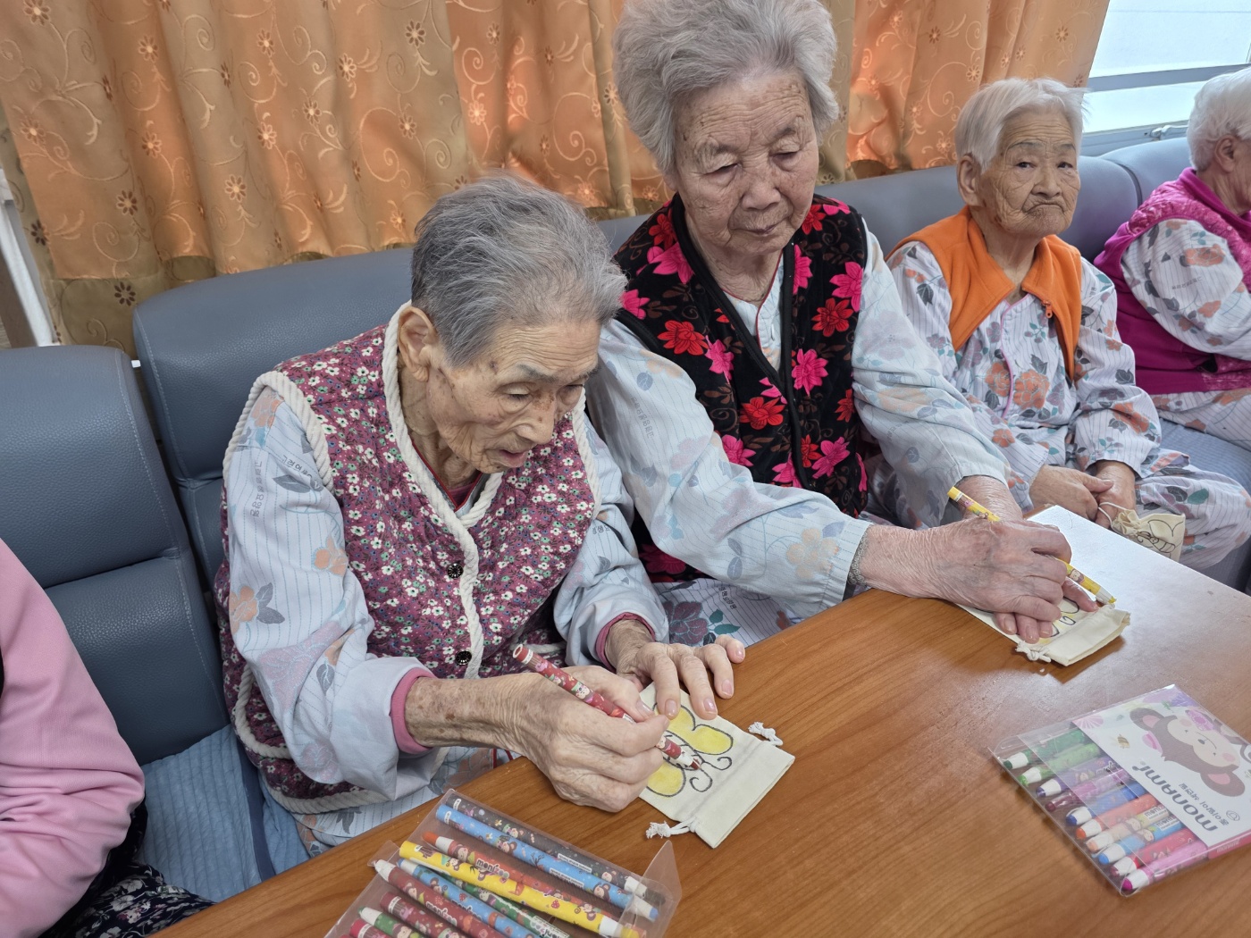 | 봄날 꽃에 대한 이야기를 들려주시고 조금만 주머니를 준비해 꽃과 나비를 그려 어르신들 소중한 물건을 보관하실 수 있게 도움주셨습니다. | |||